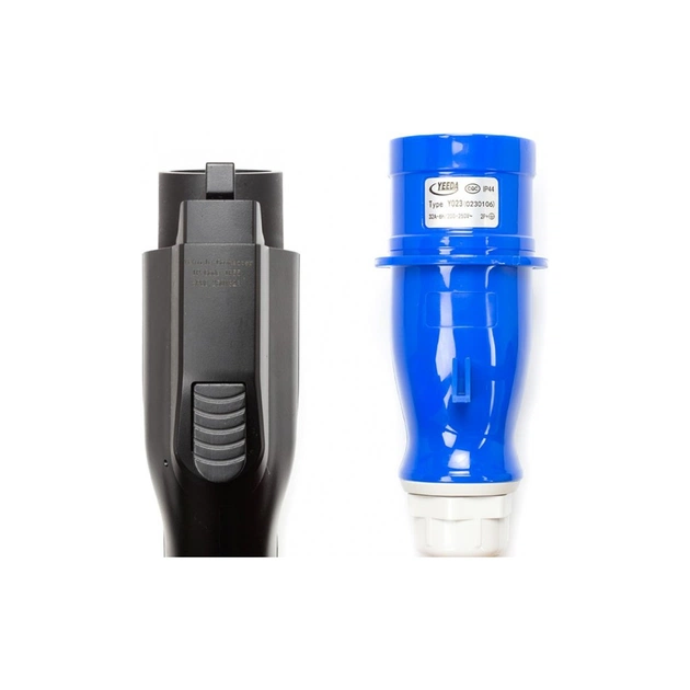 - Роз'єм електромобіля типу 1 (американського/японського стандартів), а синя вилка CEE з класом безпеки IP44 (адаптована до зовнішніх умов) підходить для найпопулярніших розеток для кемпінгу у Великій Британії та Європі.