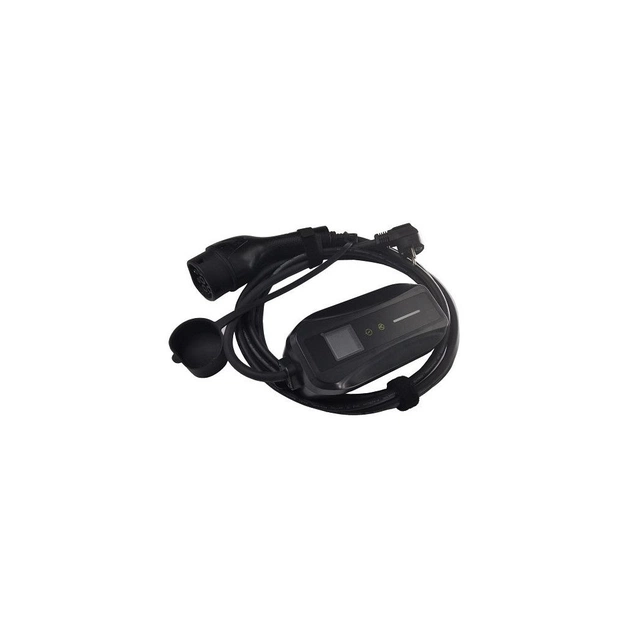 Портативний зарядний пристрій дозволяє заряджати електромобілі від мережі змінного струму потужністю до 3,5 кВт. Роз'єм для електромобіля типу 2 (європейський стандарт) та штекер Schuko. Зарядний кабель завдовжки 5 метрів. Plug&Play (заряджання починається автоматично після підключення зарядного пристрою). LED 2.8" екран, 2 сенсорні кнопки. Завдяки малій вазі його легко транспортувати.