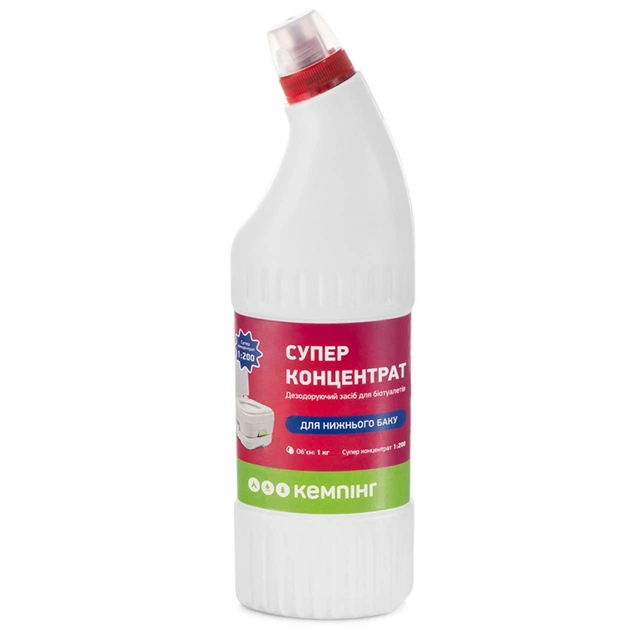 СуперконцентратДезодорувальний засіб для біотуалетів для нижнього бакаОб'єм: 1000 млСуперконцентрат 1:200