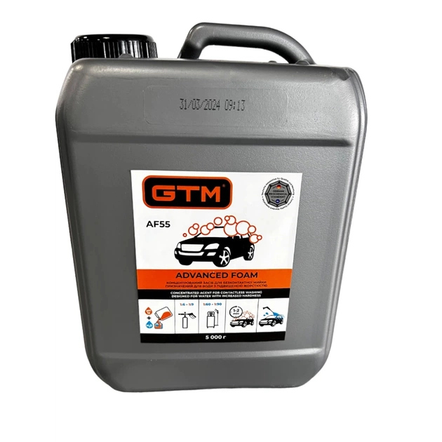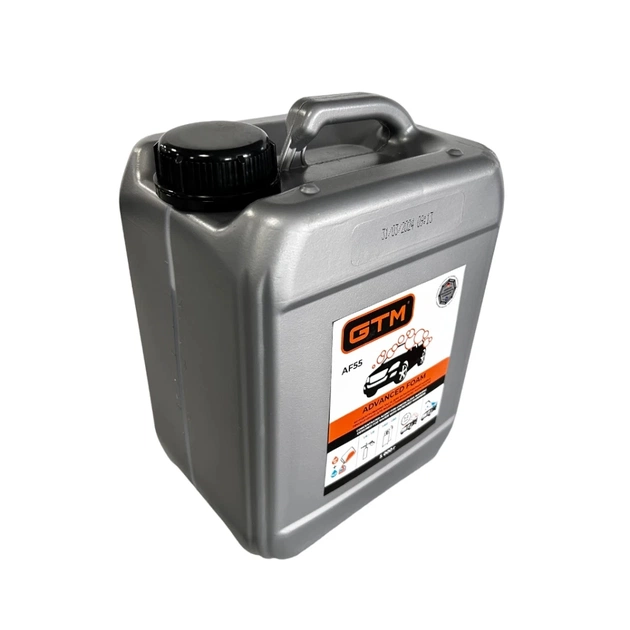 GTM Advanced Foam AF55 - концентрований високопінний засіб для очищення поверхні від усіх видів забруднень, включно з дорожнім пилом, паливним забрудненням або залишками комах. Застосовується для всіх видів безконтактного миття автомобілів, велосипедів і мотоциклів. Надає поверхні блиск без розводів. Піна безпечна для лакофарбового покриття, пластмас, гуми та металів.