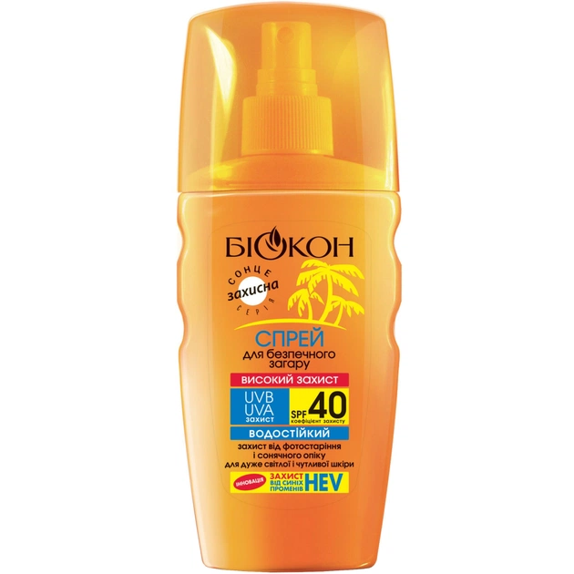 Засіб для засмаги Біокон Спрей для безпечної засмаги Високий захист SPF-40 160 мл (4820008318411)