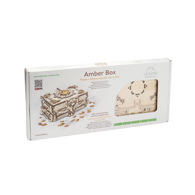 Складання Бурштинової Скриньки - захоплюючий процес, який подарує Вам кілька годин цікавого і корисного дозвілля. Дотримуйтесь докладної ілюстрованої кольорової інструкції, і процес складання не викличе у Вас ніяких складнощів і принесе тільки позитивні емоції. Деталі моделі виготовлені з високоякісної фанери, тому приємним бонусом стане чудовий запах дерева, властивий всім моделям Ugears.