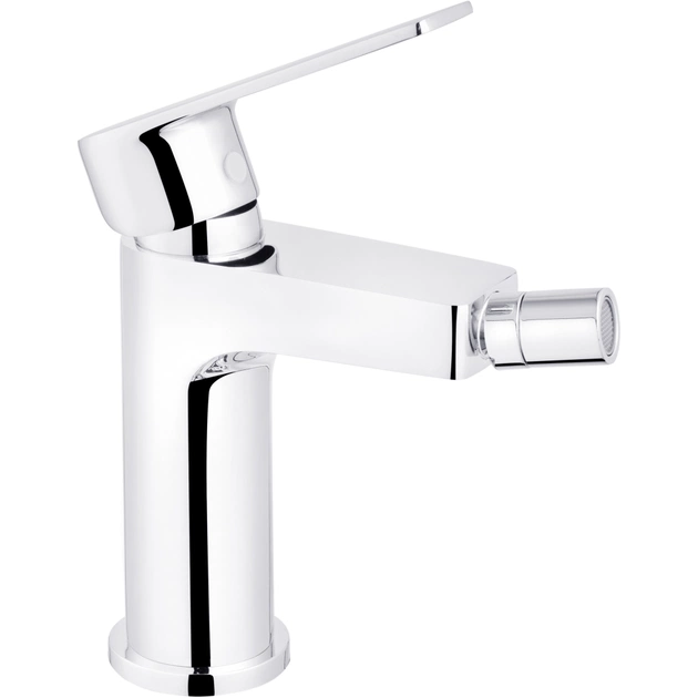 Одноважільний врізний змішувач для біде (KRP) Eifel C020 від Kroner виготовлений із латуні з покриттям хромованого кольору, має стаціонарний вилив із виносом 11.5 см з поворотним аератором, встановлюється на один отвір із підведенням води за допомогою гнучких шлангів із діаметром під'єднання 1/2".