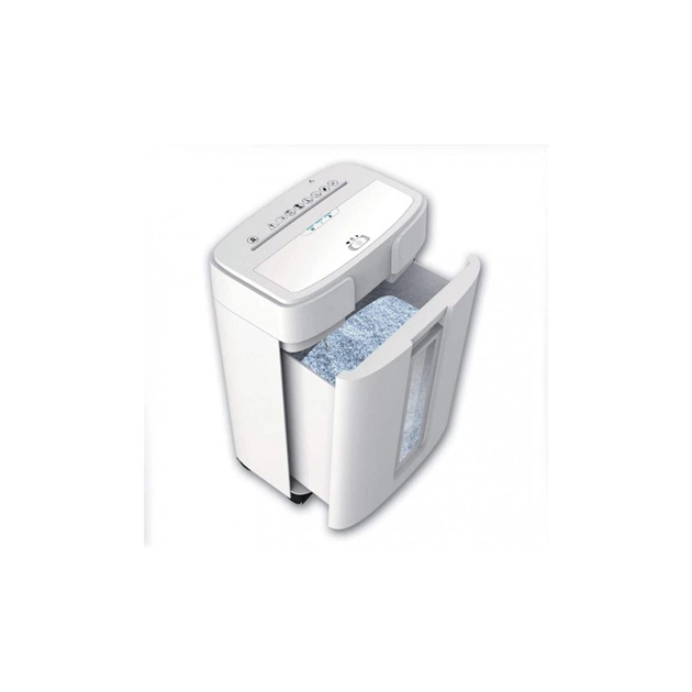 Знищує до 9 аркушів паперу на шматочки розміром 2х6 мм, що відповідає стандарту секретності P-5. Має кошик ємністю 18 літрів.