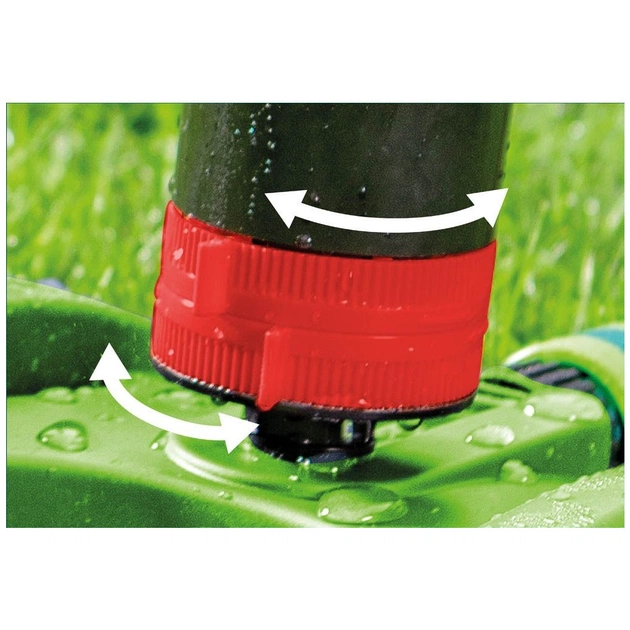 Шести секторний зрошувач з приводом, який дозволяє ефективно поливати навіть при більш низькому тиску води. Стабільна основа і регульований діапазон і кут нахилу потоку забезпечують рівномірне зволоження. Завдяки приводу максимальна площа поливу складає 350 м2. 6 різних режимів поливу дозволяють вибрати оптимальний тип струї для надання форми зрошуваною поверхні.