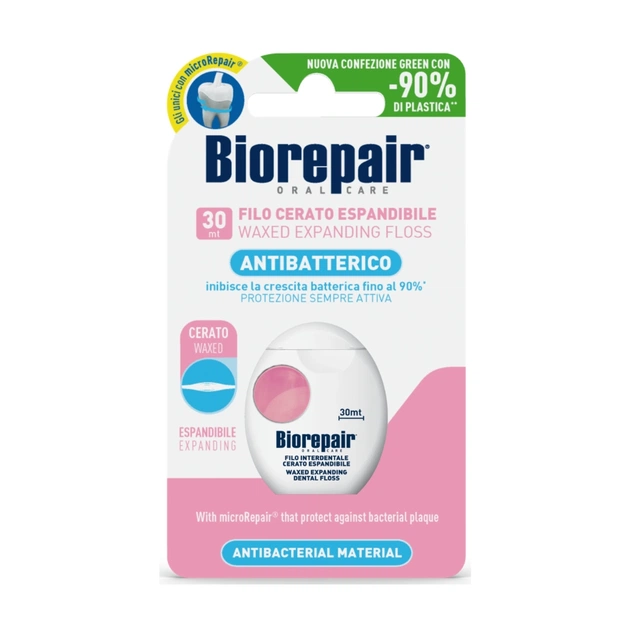 Розширююча зубна нитка-флос для слабких і запалених ясен, з протікаріозною дією і бактеріостатичним покриттям CSP.