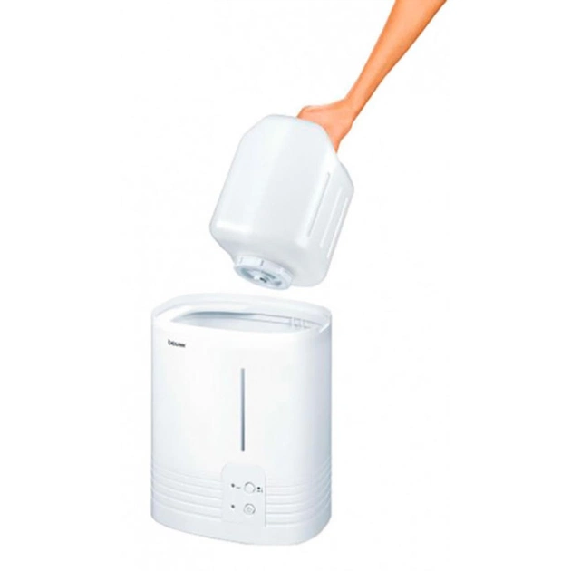 Модель Beurer LB 55 має два рівня зволоження: 200 мл / год і 400 мл / год. Розмір резервуара становить 6 л, завдяки чому, не потрібно постійно наповнювати зволожувач водою. Резервуар для води знімного типу. Використовується технологія випаровування гарячої води.