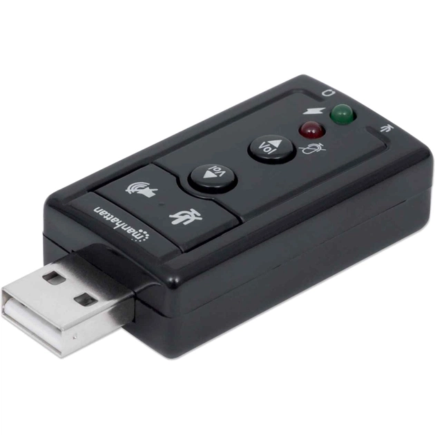 Звукова плата Manhattan Hi-Speed USB 3D 7.1 миттєво надає порти мікрофонного входу та аудіовиходу через будь-який порт USB-A та ідеально підходить для настільних ПК, ноутбуків та нетбуків. Звукова плата Manhattan Hi-Speed USB 3D 7.1 допоможе повністю замінити звукову карту, яка не працює, або оминути пошкоджений аудіопорт у ПК. З її допомогою можна легко під'єднати гарнітури, мікрофони та динаміки, обладнані короткими кабелями 3.5 мм.