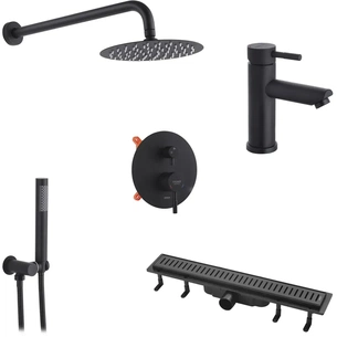 Душовий гарнітур Kroner Armada-SCH066 + змішувач Edelstahl Klassisch-SCH010 + трап лінійний Harz SCH60 Sektion Schwarz (CVS30169)