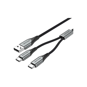Дата кабель USB 2.0 AM to 2хUSB-C M 1.0m 2.4А 480Mbps Aluminum Vention (CQOHF)