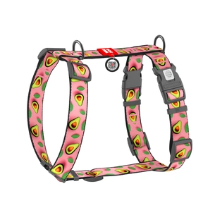 Шлея для собак WAUDOG Nylon анатомічна H-подібна з QR-паспортом "Авокадо на рожевому" пластиковий фастекс, L (345-4051)