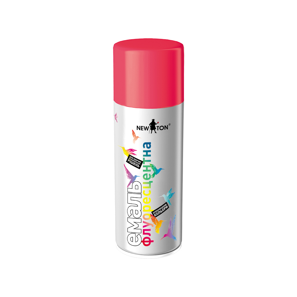 Емаль NEW TON флуоресцентна - Швидкосохнуча акрилова емаль з високим вмістом флуоресцентного пігменту. Відрізняється підвищеними характеристиками яскравості. Стійка до механічних та атмосферних впливів. Для зовнішніх та внутрішніх робіт. Використовується для маркування, оформлення, хобі, яскравого дизайну домашніх інтер'єрів, клубів, барів, дискотек. Наноситься на металеві, бетонні, гіпсокартонні, дерев'яні, скляні, паперові та інші поверхні, заздалегідь загрунтовані білим ґрунтом. Зручна під час роботи з трафаретами. Для захисту від вигоряння та досягнення максимального блиску, як заключний шар, через 30 хвилин після нанесення останнього шару емалі, рекомендується наносити безбарвний універсальний Лак NEW TON. Захист та матовий ефект створюються за допомогою Лаку універсального матового NEW TON.