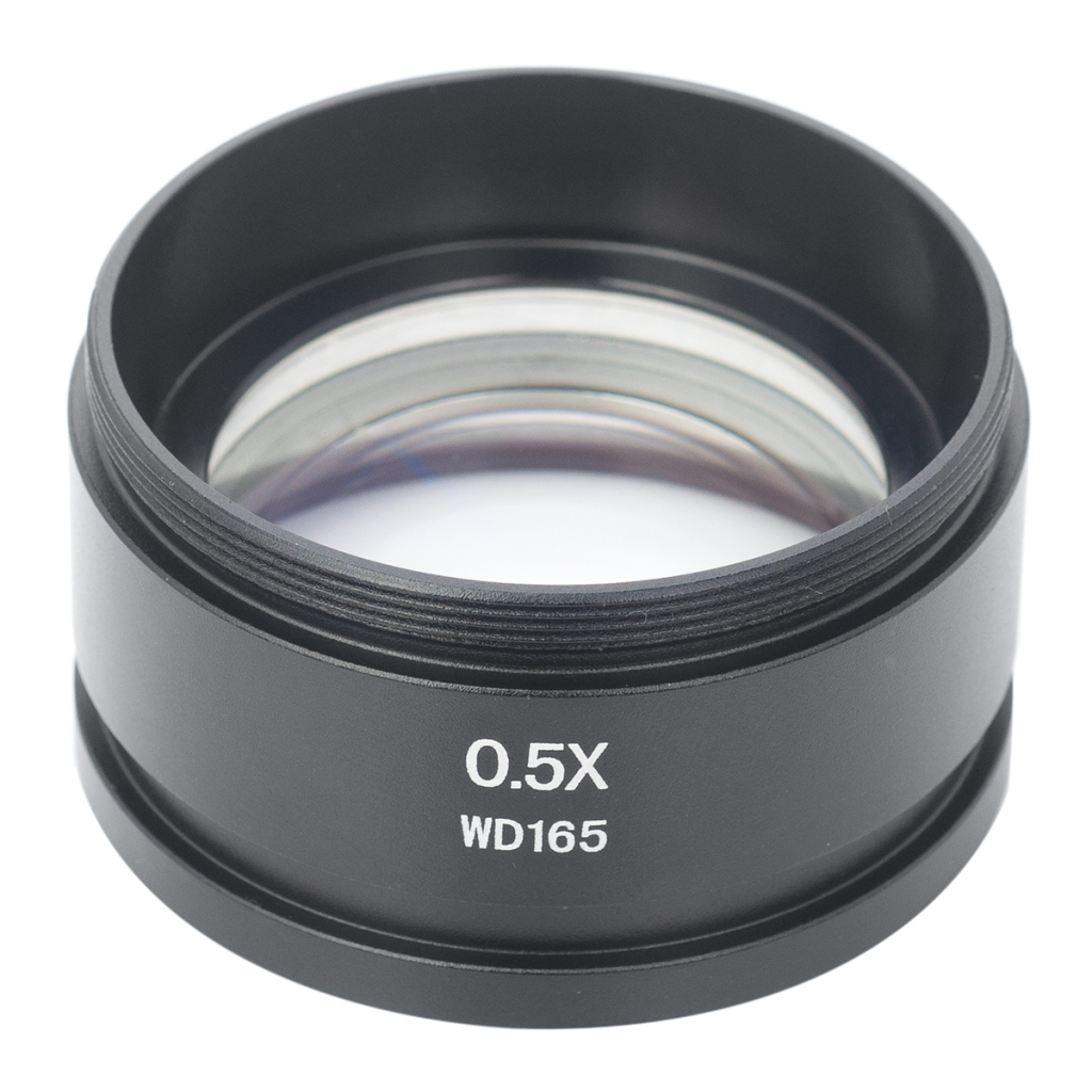 - Допоміжний об'єктив «половинного збільшення», призначений для підвищення робочої відстані мікроскопа (зрозуміло, на шкоду кратності). Діаметр металевої оправи з різьбленням по верхньому контуру - 48 мм.