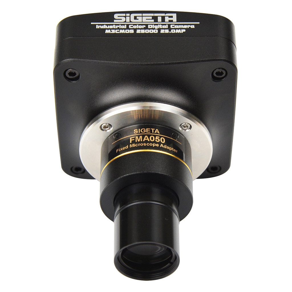 Sigeta M3CMOS 25000 25.0 MP USB 3.0 — високошвидкісна універсальна камера з Exmor-сенсором високої чіткості від компанії SONY. Модель призначена для використання з професійними оптичними мікроскопами на широкому діапазоні збільшень. Є незамінною при фото- та відеофіксації процесів у виробничій, ремонтній, металургійній чи лабораторній мікроскопії, де важливо отримати найвищу деталізацію. Встановлюється камера в окремий оптичний порт тринокуляра або в будь-який з окулярних тубусів.