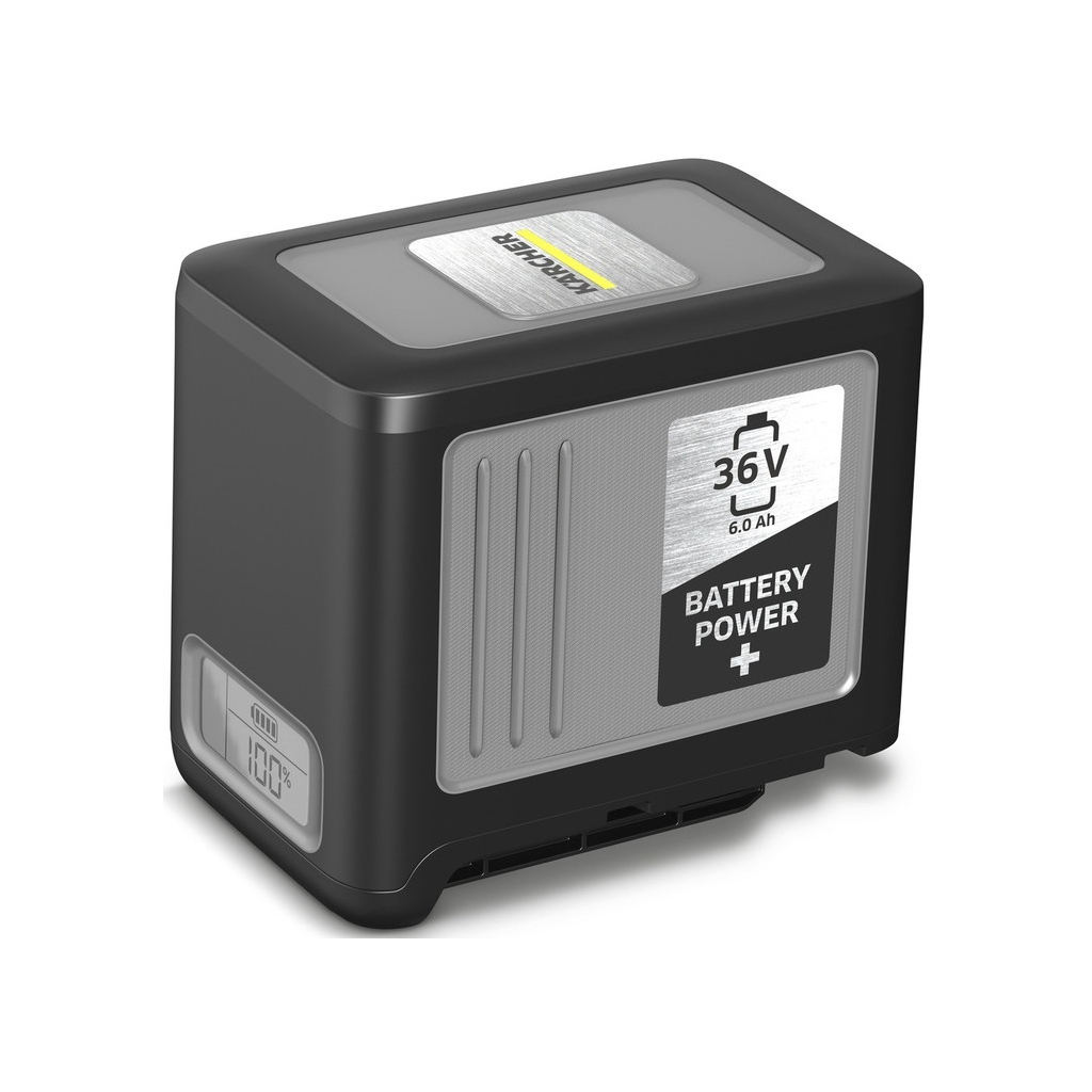 Потужний літій-іонний акумулятор Battery Power+ з напругою 36 В встановлюється в апарати Karcher на 36-вольтній акумуляторній платформі. Висока ємність (6 Ач) забезпечує тривалу роботу від заряду.