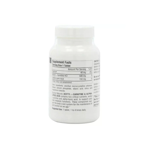 Амінокислота Source Naturals Ацетил-L-Карнітін та Альфа-Ліпоєва Кислота 650мг, 60 табл (SN1799)