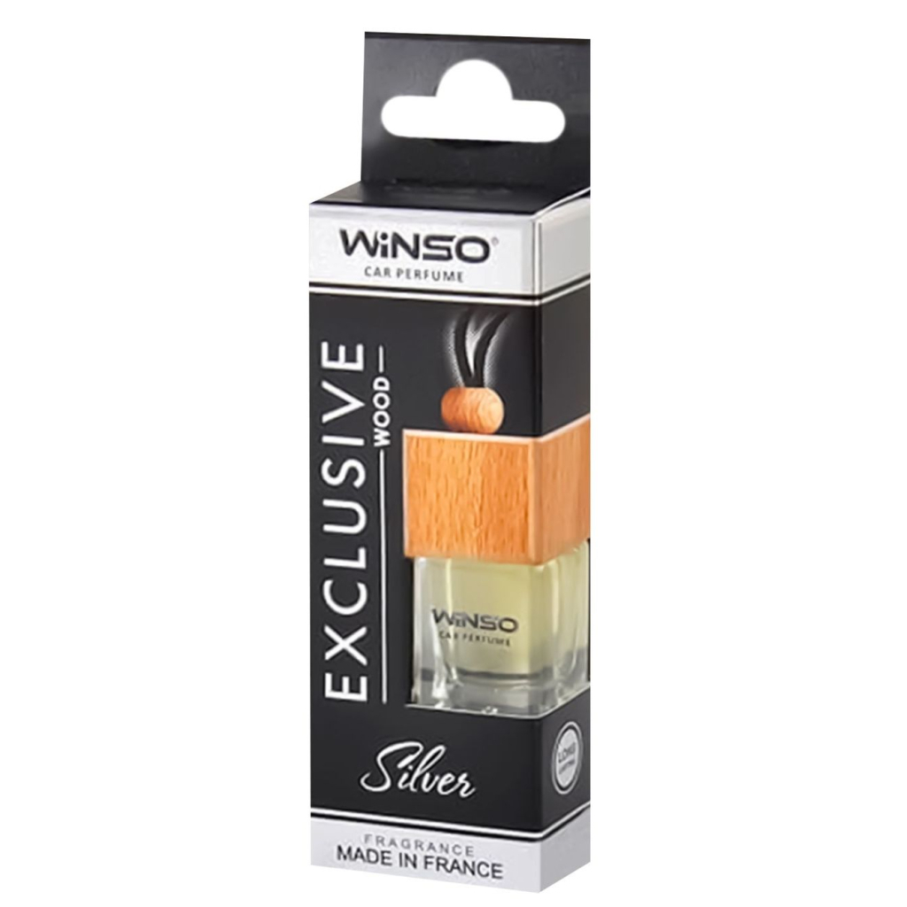 Підвісний автомобільний ароматизатор, в формі невеликого скляного флакона з дерев'яною кришкою. Завдяки міцному шнурку і компактним розмірам ароматизатор можна підвісити в будь-яке зручне для водія місце, наприклад, на дзеркало заднього виду - освіжувач повітря Winso Exclusive Wood Silver поширює приємний і ненав'язливий аромат по всьому салону автомобіля, сприяючи високому ступеню комфорту і розслабленню навіть в найтриваліших і важких поїздках. Ароматична композиція виробляється з високоякісної гіпоалергенної сировини, яка є повністю безпечнию для здоров'я. Об'єм флакона становить 6 мл, що забезпечує дуже тривалий термін служби ароматизатора Winso Exclusive Wood Silver до 3 місяців. У разі, коли дія ароматизатора не потрібна, достатьно встановити назад герметизуючу пробку в горлечко і закрити кришку.