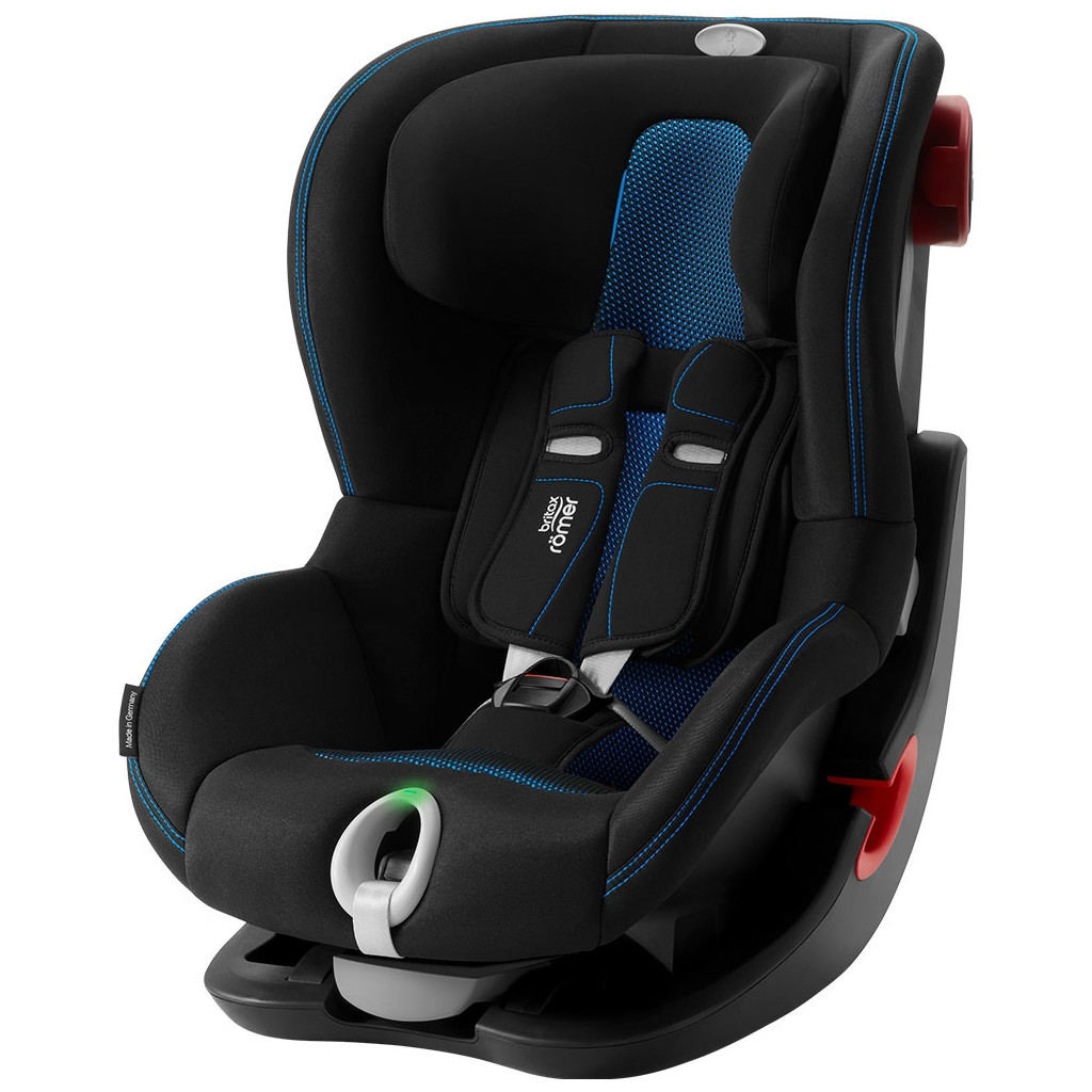 Автокрісло Britax-Romer King II - це оновлена версія King Plus - одного з найбільш популярних автокрісел від Britax. Процес встановлення автокрісла в автомобілі не займе більше 30 секунд, при цьому закріплене крісло буде триматися міцно і надійно. Одним рухом руки спинку можна відрегулювати до напівлежачого положення, завдяки чому малюк може комфортно виспатися під час далекої поїздки. Посадочне місце в King II виконано максимально ергономічно, воно має коконоподібную форму і закриті бічні частини для захисту ніг і тазостегнової частини. З King II діткам вже з 9-ти місяців буде так само комфортно як і в автокріслах групи 0 +.