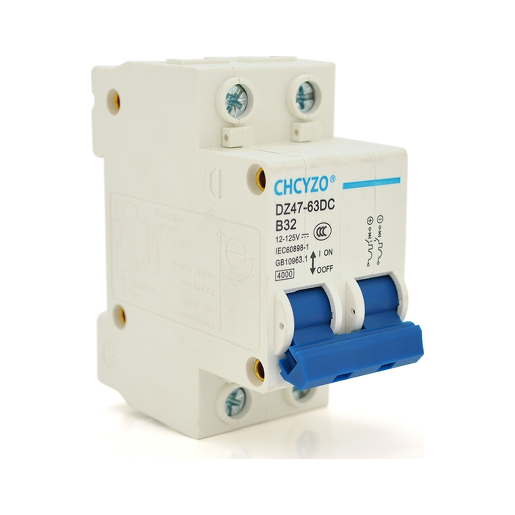 Автоматичний вимикач постійного струму CHCYZO YT-RKB-2P-32A є надійним та ефективним пристроєм для захисту електричних ланцюгів від перевантажень і коротких замикань. Він забезпечує безпеку та стабільність роботи вашої системи електроживлення, автоматично виявляючи та перериваючи подачу енергії у разі несправності.