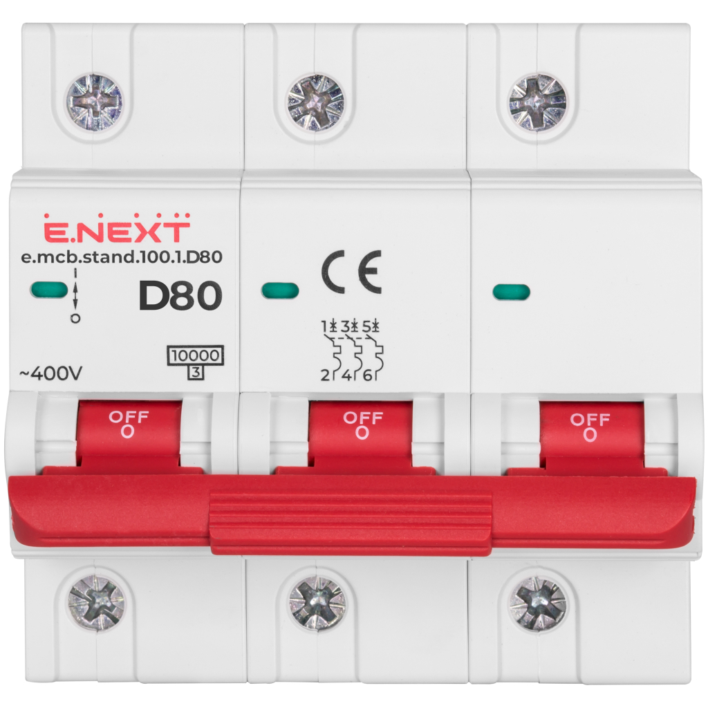 Автоматичний вимикач E.NEXT 3-п e.mcb.stand. 80А D ( 10кА) (s026002)