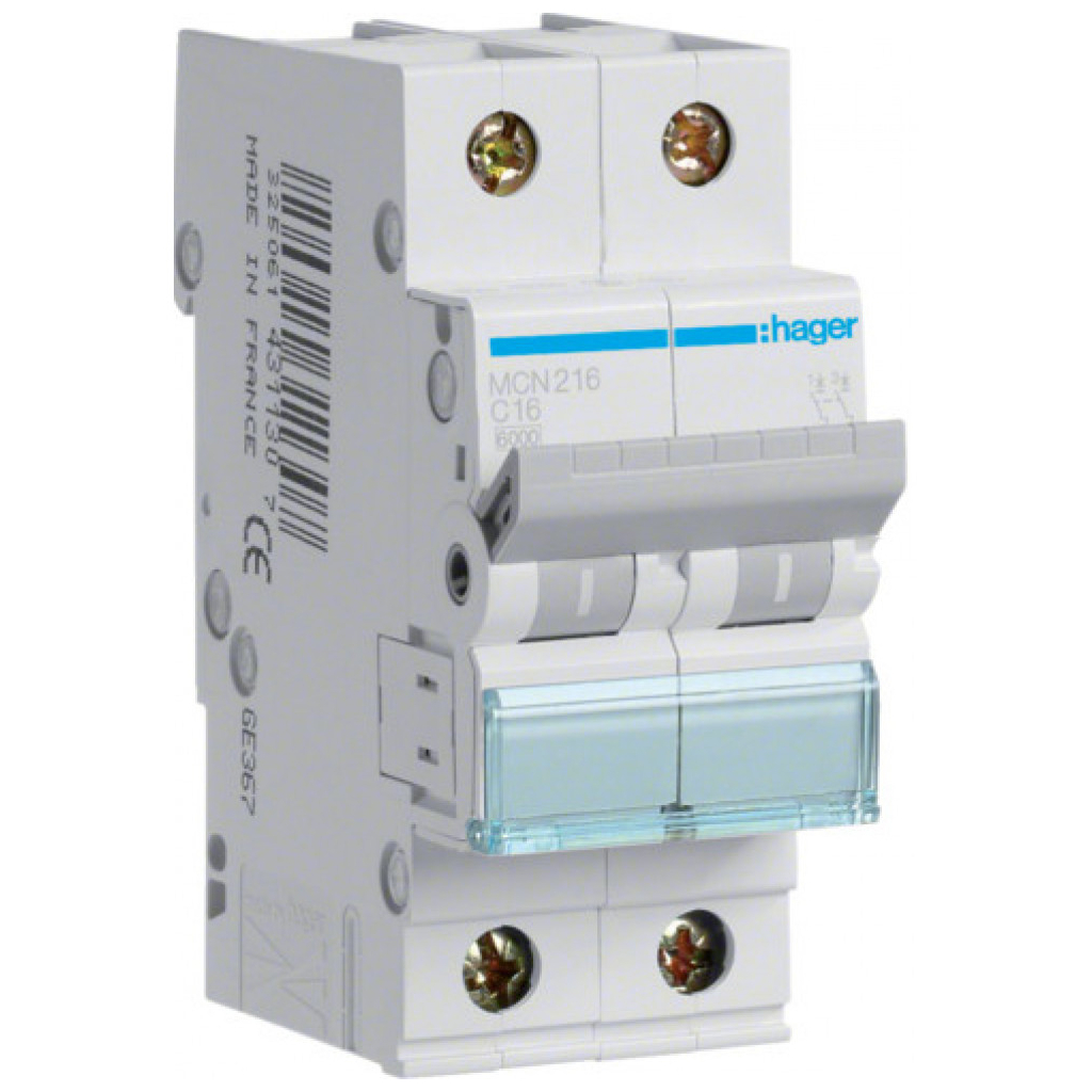 Автоматичний вимикач Hager 2-п. C 16A (6kA) 2M (A) (MCN216)