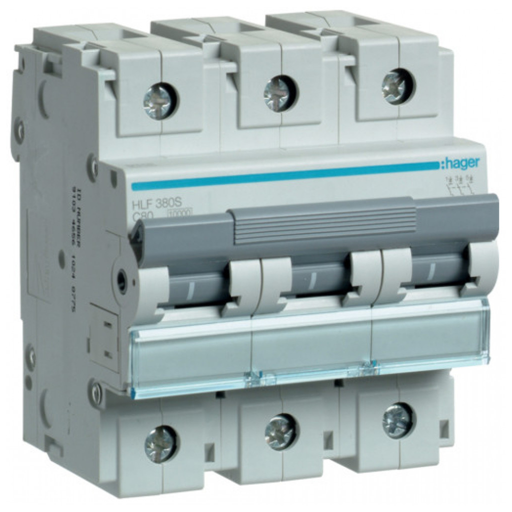 Автоматичний вимикач Hager 3-п. C 80A (10kA) (B) (HLF380S)