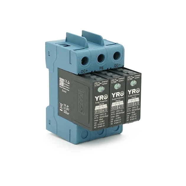 Обмежувач перенапруження призначені для захисту сонячних панелей, як від прямих, так і наведених імпульсів перенапруження. Конструкція обмежувача складається з двох (три) паралельних варісторних елементів, кожен елемент захищений тепловим роз’ єднанням.