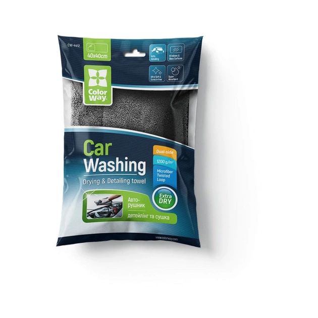 Мікрофіброве рушник ColorWay Extra Dry 1200gsm - двосторонній мікрофіброве рушник для делікатної роботи з лакофарбовим покриттям автомобіля: сушіння, видалення пилу, усунення залишків воску, витирання скла. Дозволяє м'яко, абсолютно безпечно, без тиску на кузов висушити поверхню в 2-3 рази швидше за звичайну замшеву ганчірку. Окантовка мікрофібри зшита з м'якої тканини і не залишає пошкоджень при контакті з поверхнею. Завдяки м'якому тонкому ворсу та спеціальному плетінню «кручена петля» має екстра абсорбуючі властивості - вбирає до 600% води від власної ваги без залишків розводів та ворсу, що дозволяє використовувати рушник також для протирання скляних та делікатних поверхонь таких як (вікна, душові кабіни, дзеркала) , хромовані вироби та інше)