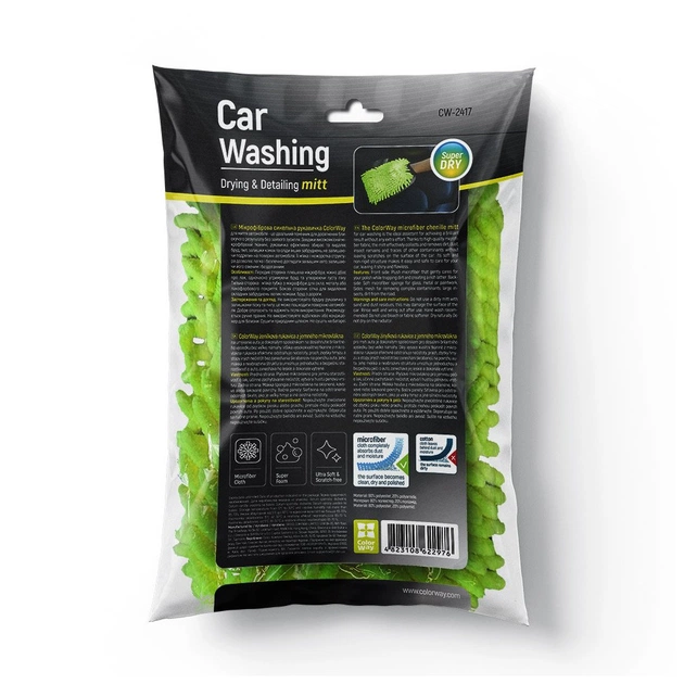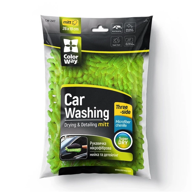 Мікрофіброва синельна рукавичка ColorWay для миття автомобіля - це ідеальний помічник для досягнення блискучого результату без зайвого зусилля. Завдяки високоякісній мікрофібровій тканині, рукавичка ефективно збирає та видаляє бруд, пил, залишки комах та сліди інших забруднень, не залишаючи подряпин на поверхні автомобіля. Її м'яка і нежорстка структура дозволяє легко і безпечно доглядати за вашим авто, залишаючи його сяючим і бездоганним.
