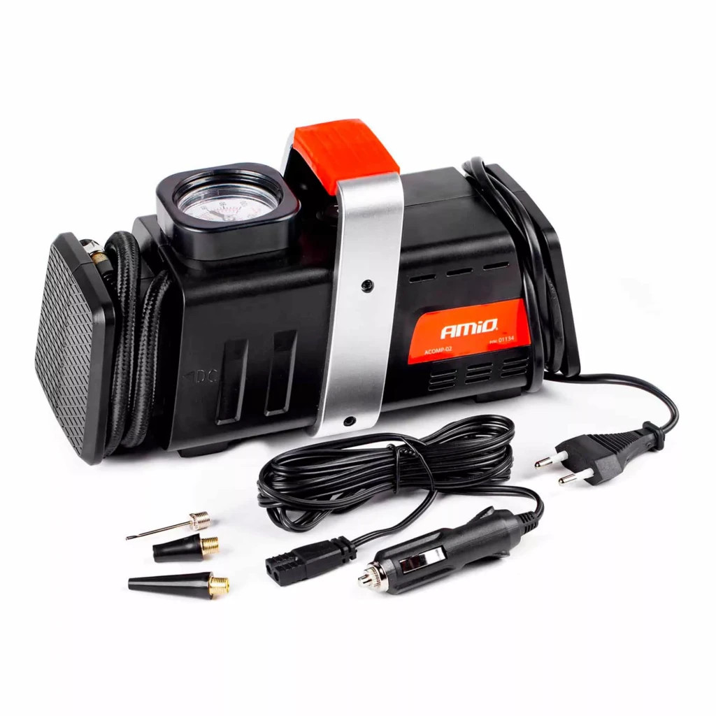 AMiO Acomp-02 01134 - невід'ємна річ у транспортному засобі. Саме він допоможе уникнути випадкових проколів або спущеного колеса. Компресор від фірми AMiO має здатність нагнітати до 200 PSI (14 бар), що дозволить без проблем підняти тиск у шинах до необхідного рівня. Міцний шланг дозволить доставити пристрій до кожного колеса. На корпусі є захисна металева рама, ручка досить широка і має гумове покриття для зручності утримання.