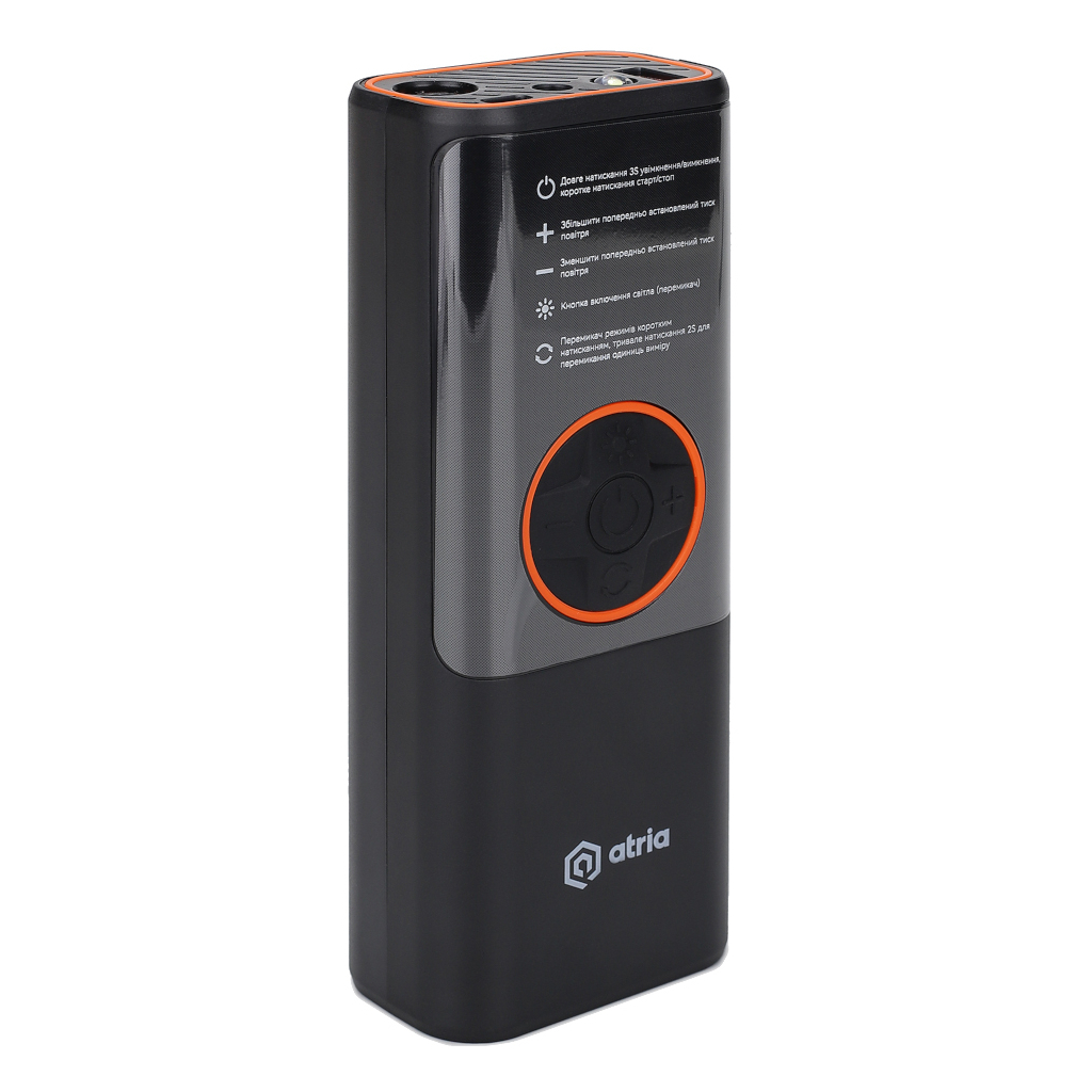 Універсальний портативний насос ATRIA MS22C-203A – це багатофункціональний пристрій для накачування автомобільних шин, велосипедів, м’ячів та інших надувних виробів. Завдяки вбудованому акумулятору та функції Power Bank, компресор забезпечує автономну роботу та можливість заряджання інших гаджетів.