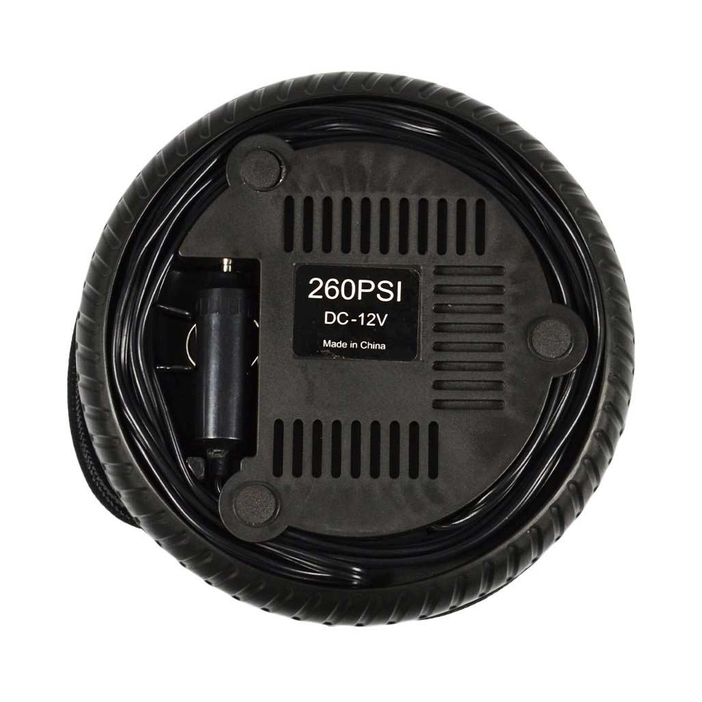 Компрессор для шин автомобиля работает от прикуривателя. Он очень простой и легкий в использование. Просто подключите прибор к прикуривателю, и нажмите кнопку. Один раз нажал и он автоматически работает с низким уровнем шума. Надежный шнур аккуратно закручивается и не заламывается. Имеет креативный дизайн в форме шины и занимает совсем мало места. Длина шнура позволяет накачать все шины автомобиля не испытывая неудобства.