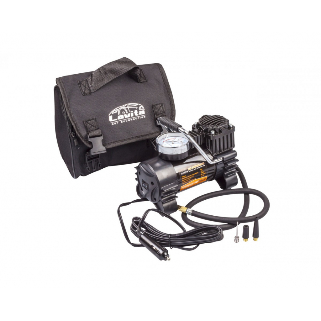 Автомобильный компрессор LAVITA 191525 для автолюбителя, важлива зручна і безпечна експлуатація автомобіля. З різних причин тиск в автомобільних шинах стає менше нормального рівня. Іноді, навіть покупка дорогої і якісної гуми не страхує від проколу шини, або від факту, що рано, чи пізно стиснене повітря може почати проникати через стінки покришки. Кожен автомобіліст повинен знати як впоратись з цим головним болем. Тому автомобільний компресор LAVITA 191525 - є невід'ємною річчю в транспортному засобі. Саме він допоможе уникнути випадкового пробиття, або спущеного колеса. Компресор фірми LAVITA має здатність нагнітати до 10атмосфер (кг/см2), що дозволить без проблем підняти тиск в шинах до необхідного рівня. Також він досить швидко накачає ваше колесо R15, всього за пару хвилин, цьому сприяє продуктивність в 35л/хвилину. Також компресор оснащений аналоговим манометром, орієнтуючись на його показання ви з легкістю зможете підняти тиску до рекомендованого. У комплекті також йде довгий мідний кабель живлення (3м), міцний шланг (0,8м), що дозволить доставляти прилад до кожного колеса. Корпус виконаний з метала, ручка має м'яке покриття для зручності захоплення.