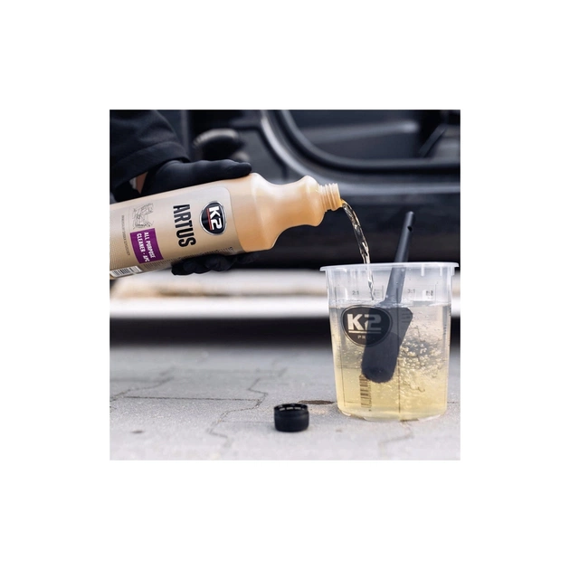 K2 Artus - ефективний концентрат для очищення таких поверхонь, як пластик, гума, штучна шкіра та тканинна оббивка. Ефективно видаляє забруднення навіть із сильно пошкоджених елементів, повертаючи їм природний вигляд. Залишає приємний аромат. Не вимагає змивання після нанесення. Ідеально підходить для прання оббивки в пилососах. Підкреслює насичений колір чорних тканин. Він безпечний для очищених поверхонь, не залишає білого нальоту та розводів.