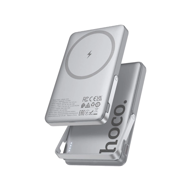 "Повербанк Hoco Q36 Sunlight PD20W Magnetic 5000 mAh — це ультратонкий портативний акумулятор з магнітною бездротовою зарядкою та вбудованою відкидною підставкою. Компактний формат і легка вага роблять його зручним для щоденного використання разом зі смартфоном — як у дорозі, так і на робочому столі.