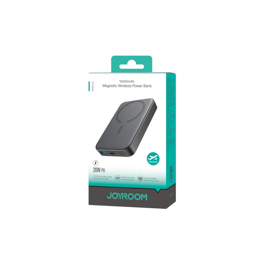 Батарея універсальна JOYROOM Magnetic Wireless 10000mAh 20W PD, QC, USB-C In/Out Black (JR-W020 / 6941237118455)