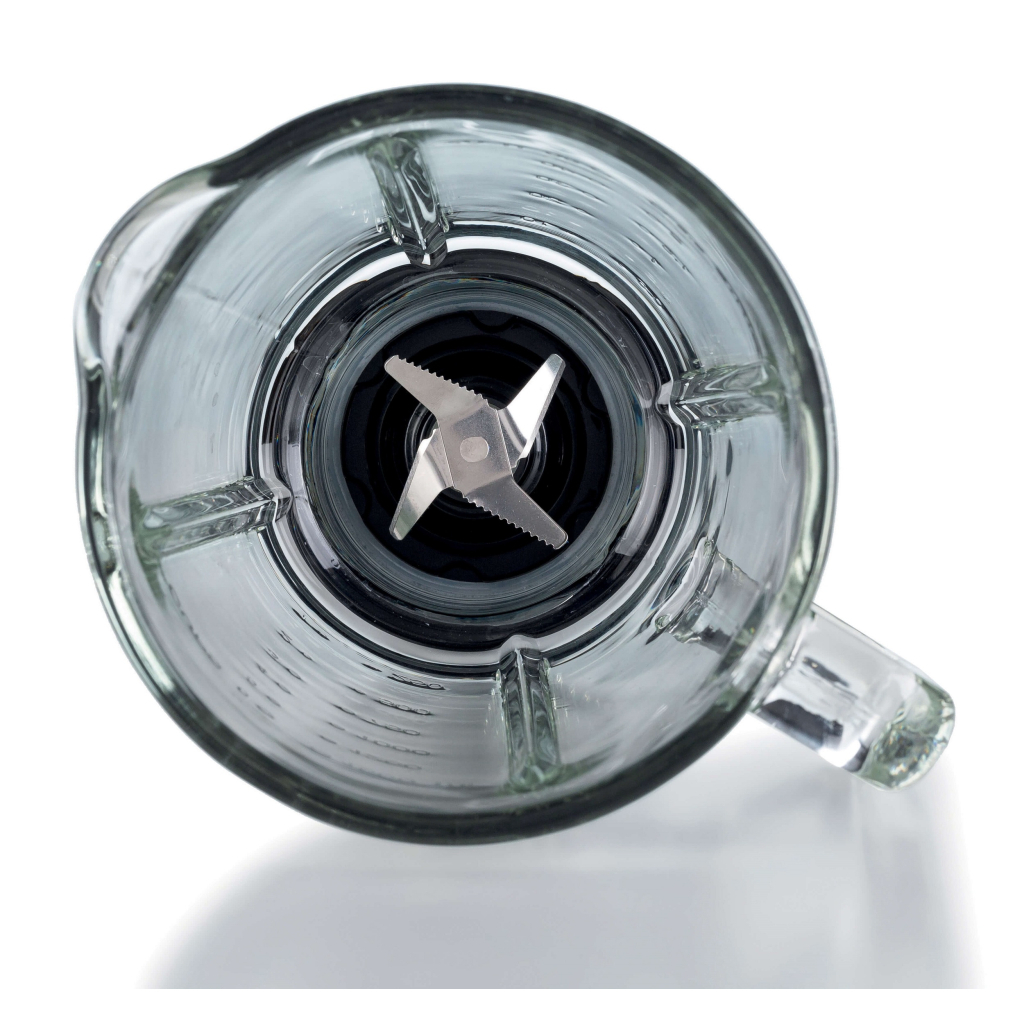 Корпус блендера, виконаний зі скла та пластику, є не тільки стильним, а й надзвичайно міцним. Завдяки протиковзким ніжкам, пристрій стійко тримається на вашій кухонній поверхні під час роботи, надаючи вам впевненості та зручності у користуванні. У ньому також передбачено захист двигуна від перегрівання, що гарантує безпеку й тривалий термін експлуатації, навіть під час інтенсивного використання.