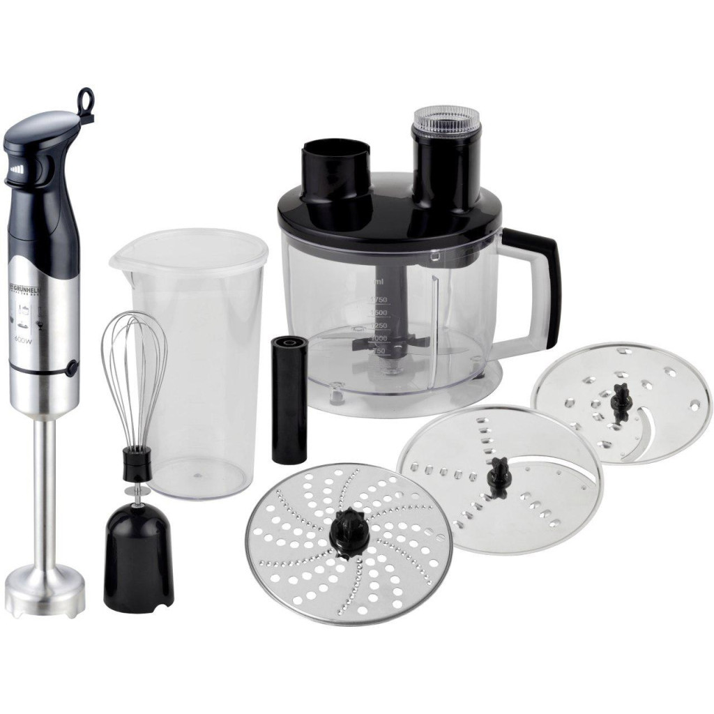 Стаціонарний блендер Grunhelm EBS-1151SB - потужний, надійний побутовий прилад який стане незамінним помічником на будь-якій кухні. Призначений для подрібнення, збивання, дроблення, змішування овочів і фруктів, приготування коктейлів і т. Д. Блендер обладнаний електромотором потужністю 1150Вт, що дозволяє легко справляючись з поставленими завданнями. Ніжка блендера і блок двигуна виготовлені з удароміцного пластика, а ріжучий елемент з високоякісної нержавіючої сталі. Серед особливих відмінностей варто відзначити плавне регулювання швидкості, наявність чаші подрібнювача з нержавіючими ножами і двостороннього диска-терки, що значно розширюють функціонал даної моделі. Всі вище перераховані якості роблять покупку даного блендера розумним і економічним рішенням. ОСОБЛИВОСТІ: низький рівень шуму; подрібнювач; двостороння насадка-терка; два швидкісних режиму; плавне регулювання швидкості; мультифункціональність; простота в експлуатації. КОМПЛЕКТАЦІЯ: блендер Grunhelm EBS-1151SB; мірний стакан; подрібнювач; насадка віночок; диск-терка; інструкція з експлуатації; картонна упаковка.