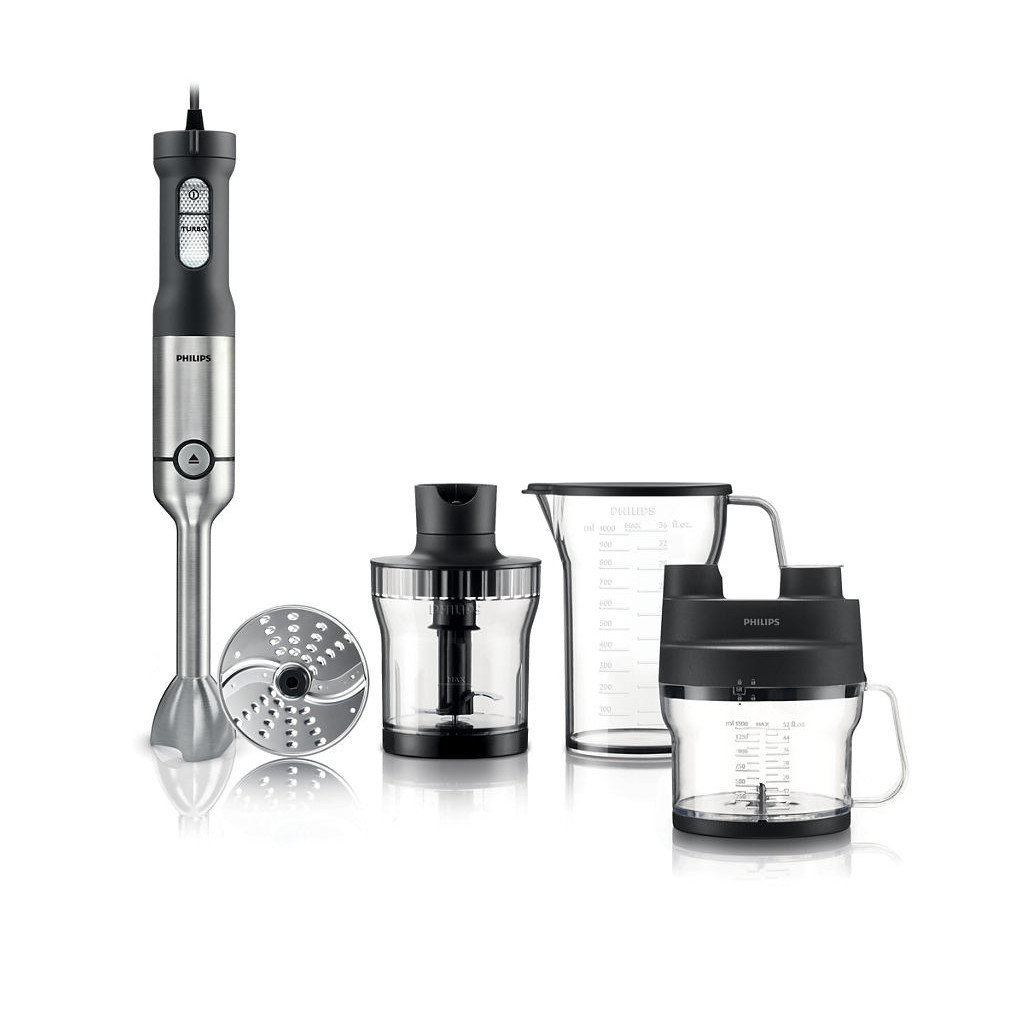 Спеціальна насадка-гак з легкість замісить тісто. Для ручного блендера пропонується широкий набір аксесуарів, які допоможуть вам заощадити час і сили. Тепер навіть на маленькій кухні ви зможете з зручністю приготувати самі різні домашні страви. Насадки від'єднуються одним натисканням кнопки, і ви з легкістю знімете і встановите будь-яку насадку. Набір аксесуарів включає великий подрібнювач XL, компактний подрібнювач, віночок для збивання, насадку для картопляного пюре, аксесуар, аналогічний кухонному комбайну з насадкою і дисками для нарізки кубиками. Цей компактний ручний блендер Philips HR1669/90 значно полегшить роботу на кухні. Тепер приготування будь-яких страв буде займати набагато менше часу.