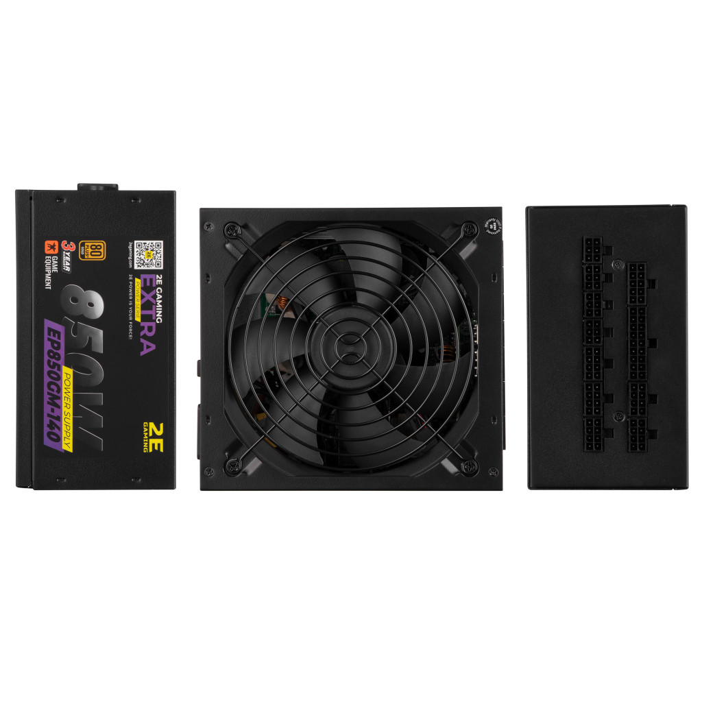 Блок живлення 2E GAMING EXTRA POWER (850W), >90, 80+ Gold, 140mm, 1xMB 24pin(20+4), 2xCPU 8pin(4+4), 4xMolex, 6x (2E-EP850GM-140)