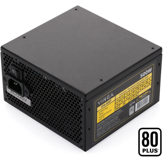 Vinga 500W (VPS-500P) має сертифікат енергоефективності 80 PLUS. В ході лабораторних випробувань уповноважений міжнародний орган встановив, що ця модель при роботі втрачає не більше 20% енергії. Завдяки цьому модель не тільки економить ваші кошти, а й менш інтенсивно нагрівається при роботі.