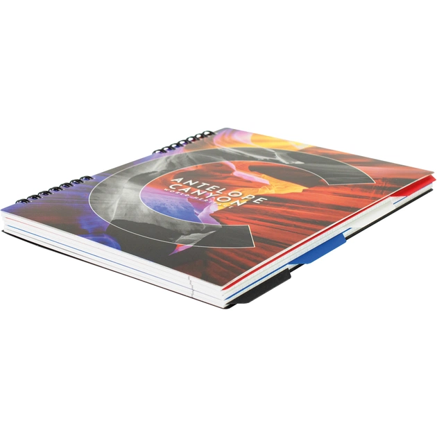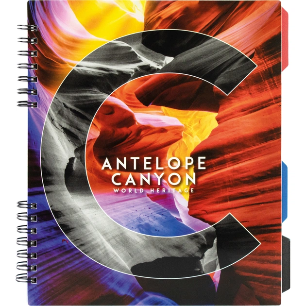 Блокнот формату B5 (170x205). Кріплення блока — спіраль. Обкладинка — пластик. Внутрішній блок — клітинка, цупкість паперу — 65 г/м², кількість аркушів — 120. З роздільниками блока. Вироблено в Україні.