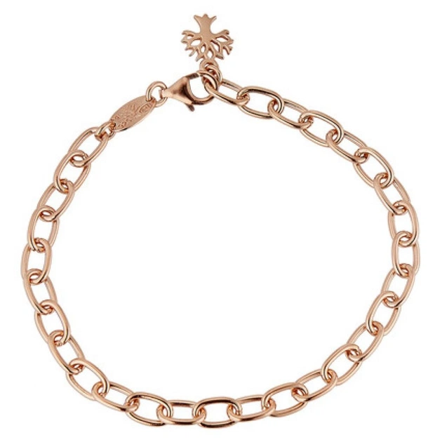 Браслет із срібла 925 проби з покриттям із рожевого золота від Julie Julsen вражає своїм простим дизайном, який можна комбінувати різними способами. Невеликий кулон у вигляді дерева бовтається на кінці ланцюга якоря шириною 5 мм, показуючи джерело натхнення для марки.