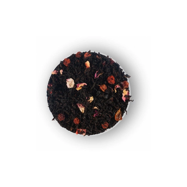 Чай чорний цейлонський листковий із ягодами вишні, горобини, глоду, шипшини, бузини, чорної смородини, пелюстками квітів і ароматом лісових ягід.