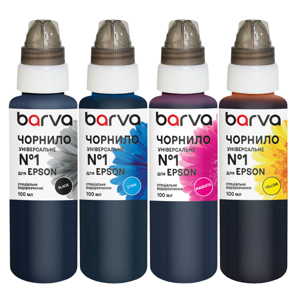 Кожна партія чорнил проходить обов’язковий випускний контроль, що гарантує постійну якість продукції. Збалансований склад чорнил Barva забезпечує насичені кольори, плавні переходи відтінків та реалістичну передачу кольору як під час друку текстових матеріалів, так і фотографій.