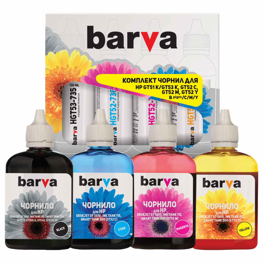 Чорнило Barva HP GT53/GT52 B/C/M/Y 4x100 мл (HGT53-100-MP)