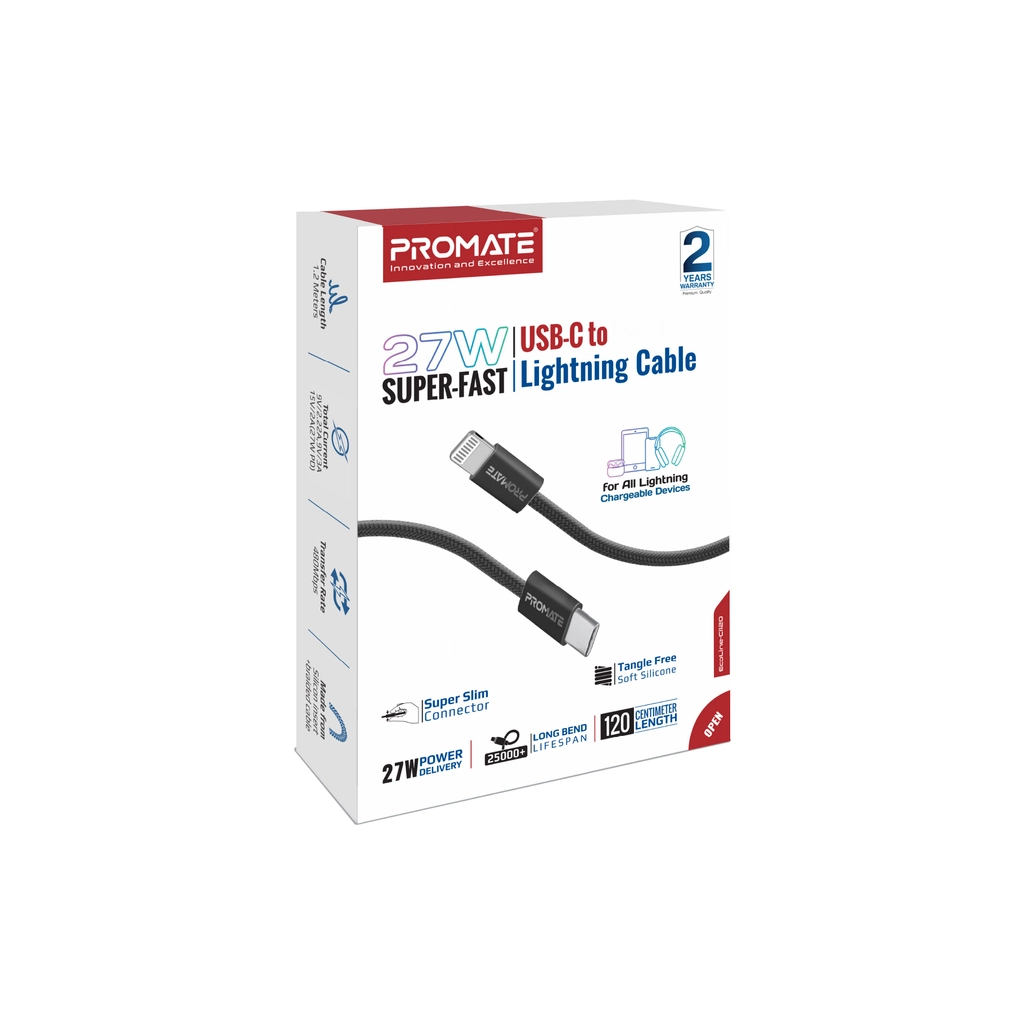 Дата кабель USB-C to Lightning 1.2m Promate (ecoline-ci120.black)