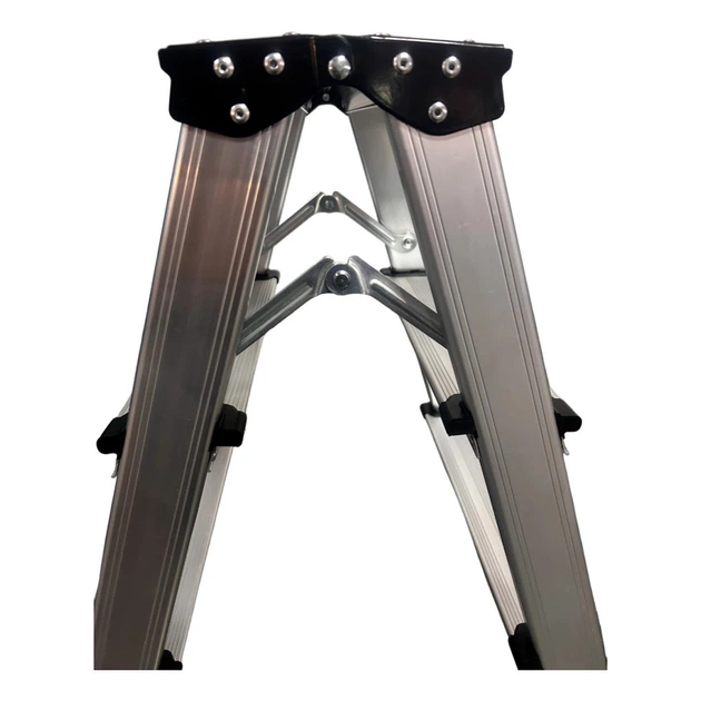 GTM KMH1205 - компактна алюмінієва драбина у формі двосторонньої стрем'янки, яка чудово підходить як для побутового, так і для професійного використання. У даній моделі драбини 5 сходинок і максимальна висота до верхньої сходинки 98 см.