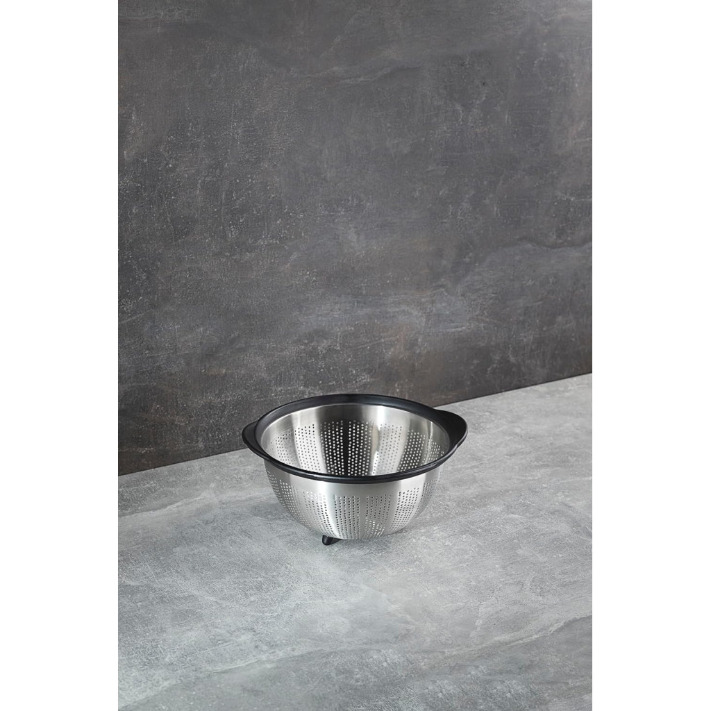 Дві бічні ручки забезпечують хороший захват для зручної та комфортної роботи, а конструкція основи дозволяє вмісту друшляка сидіти над поверхнею зливу.