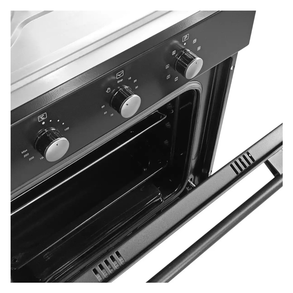 Духова шафа GRUNHELM GDG 190 B вбудовується в нішу для зручності, працюючи від стандартної мережі. Дверцята та панель управління виконані зі скла. Ручки практичні поворотні із алюмінію. Об'єм духовки 65 л розігрівається до максимальної температури 250 °С, споживаючи при цьому 1.31 кВт (гриль окремо 0.62 кВт). Ручка духовки зроблена з алюмінію, що важливо для більшості користувачів. У ній напрямні йдуть хромовані з’ємного типу та виставляються на п'яти рівнях. У цій духовці є підсвічування, конвекція, механічний таймер для зручності використання.